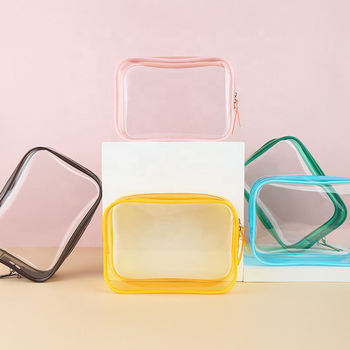 Wholesale Custom Logo Transparent Clear Makeup Bag Cosmetic PVC Pouch with Zipper Skincare Toiletry Travel Bag